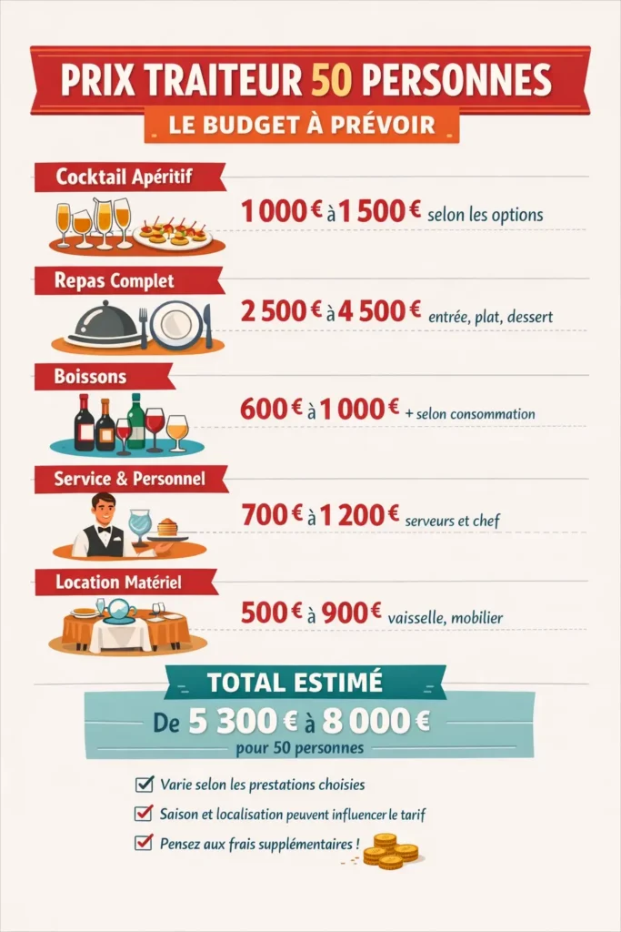 Quel est le prix d’un repas traiteur pour 50 personnes ?