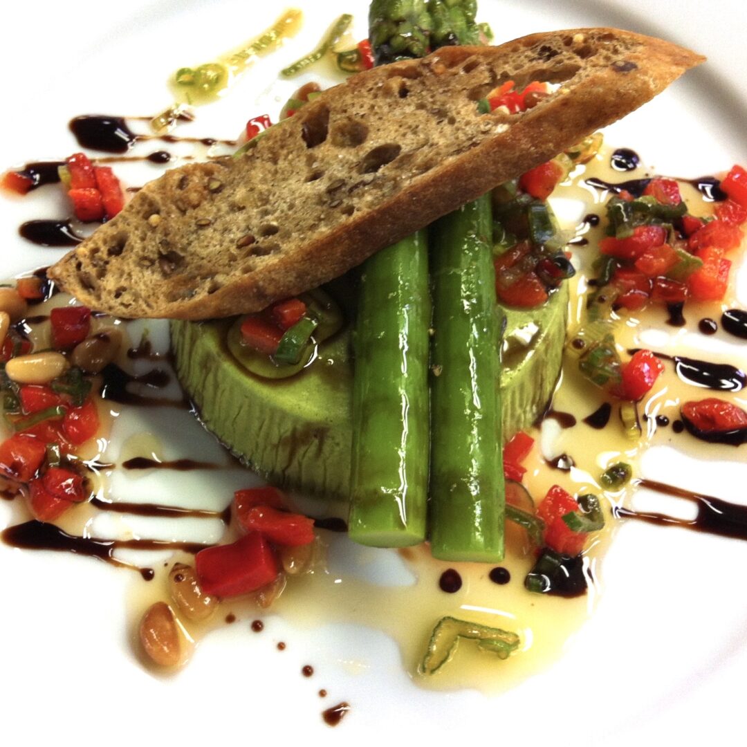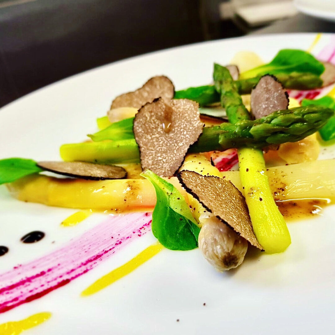 Effeuillé d’asperge à la truffe noire, vinaigrette betterave