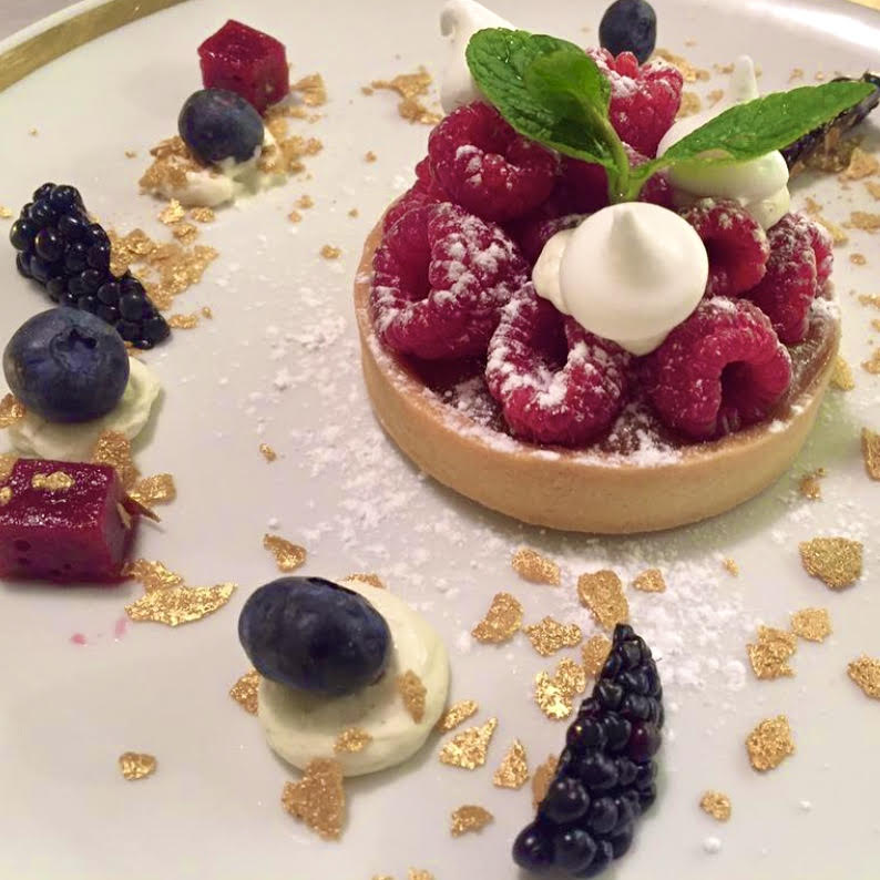 Tarte framboise et rhubarbe aux fruits rouges et éclats d’or