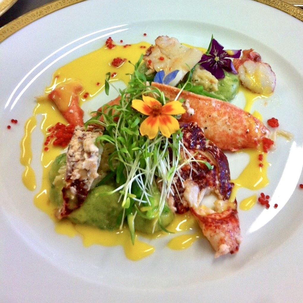 Homard rôti au beurre de citron, écrasé de pomme terre douce à l’orange